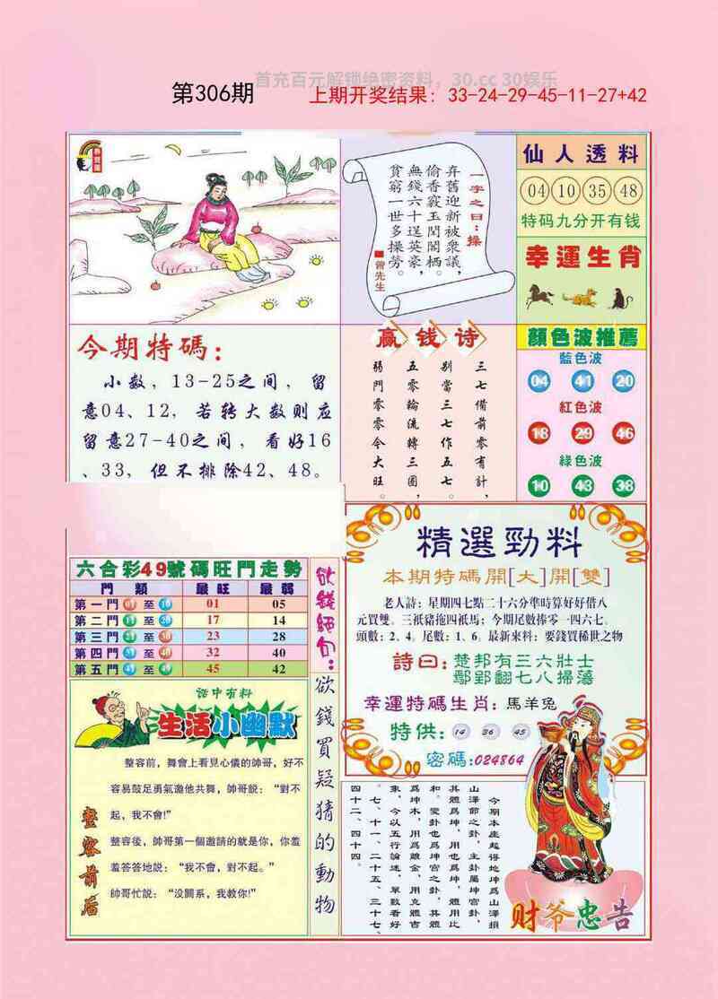 | 304期:单双两肖【双数+牛羊】开:马48中 |