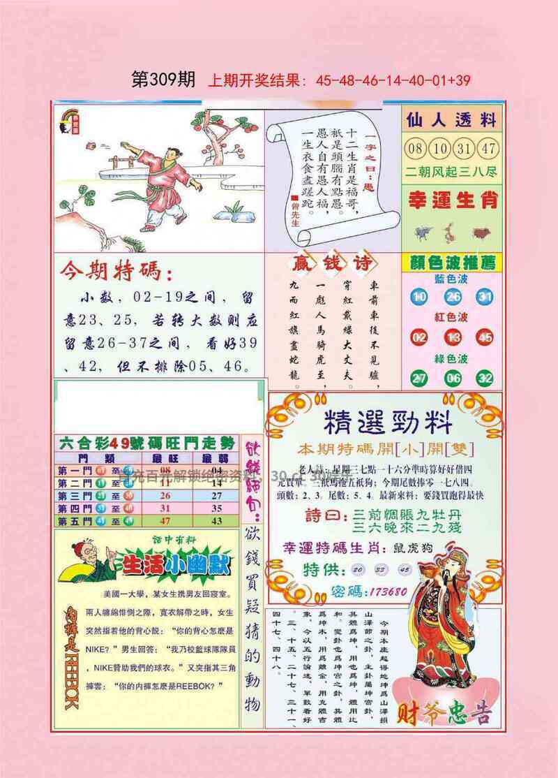 | 309期:🀄天地中特【天肖】开:鼠06错 |